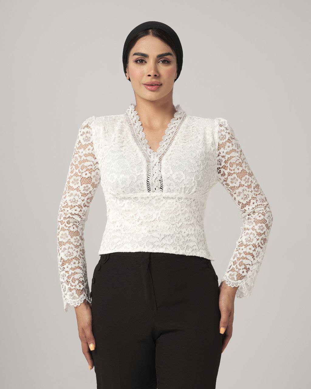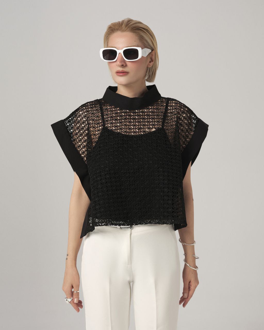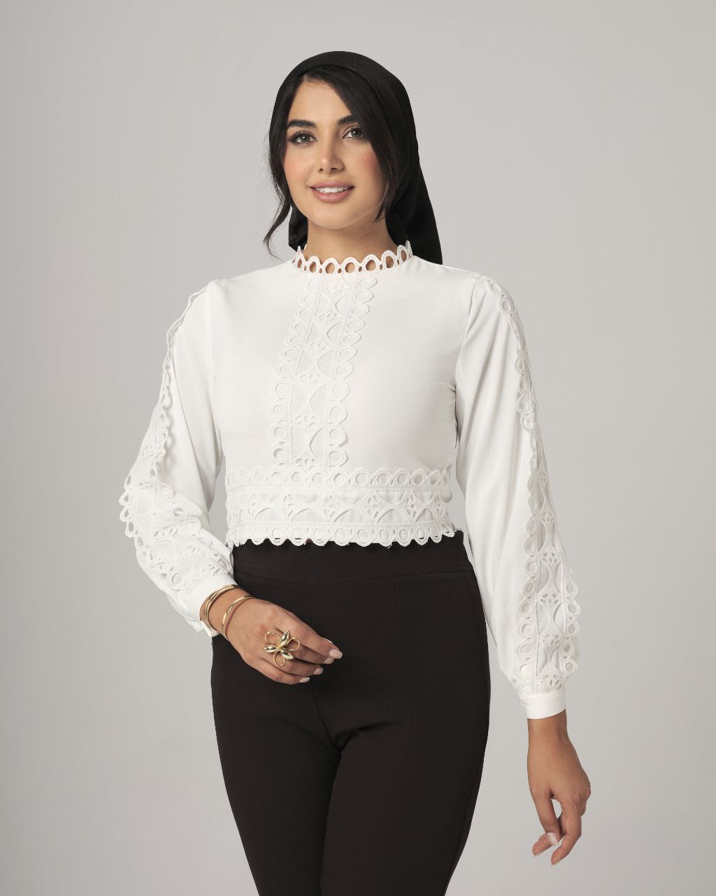 شومیز کراپ گیپور زنانه آستین بلند | مدل خاص و شیک مشکی و سفید