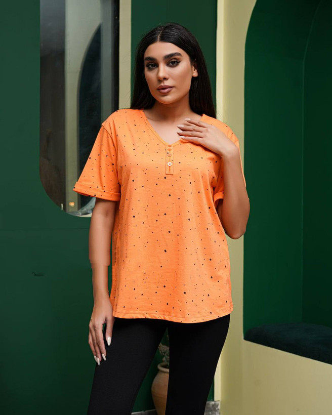 تیشرت زنانه قواره بزرگ یقه دلبری،جنس پارچه پنبه لاکرا با کشسانی بالا بسیار لطیف