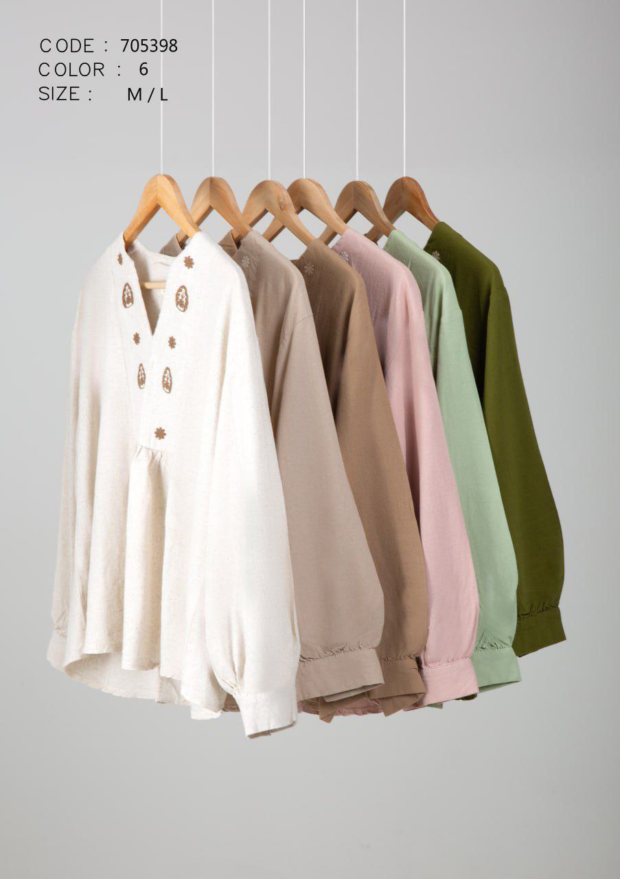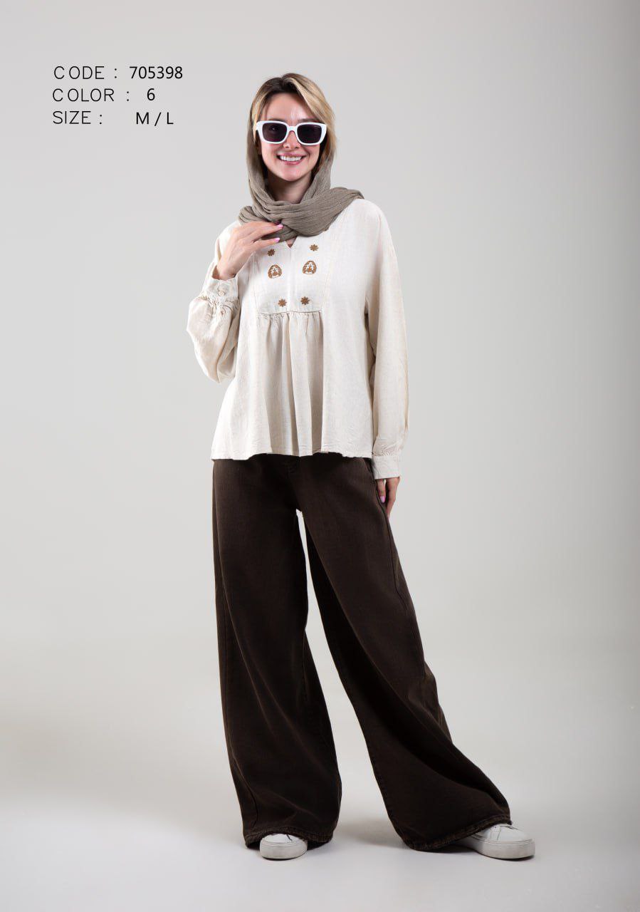 تونیک مانتو جلو بسته لینن با طراحی ساده اما جزئیات خاص مثل یقهگلدوزیشده و آستینهای مچی،